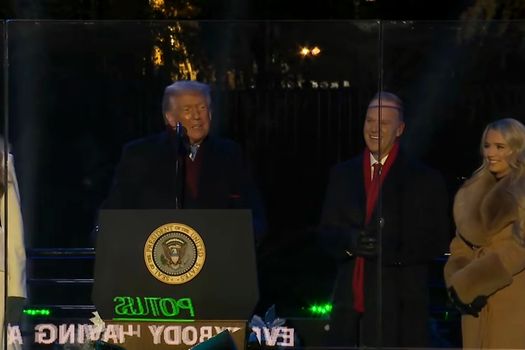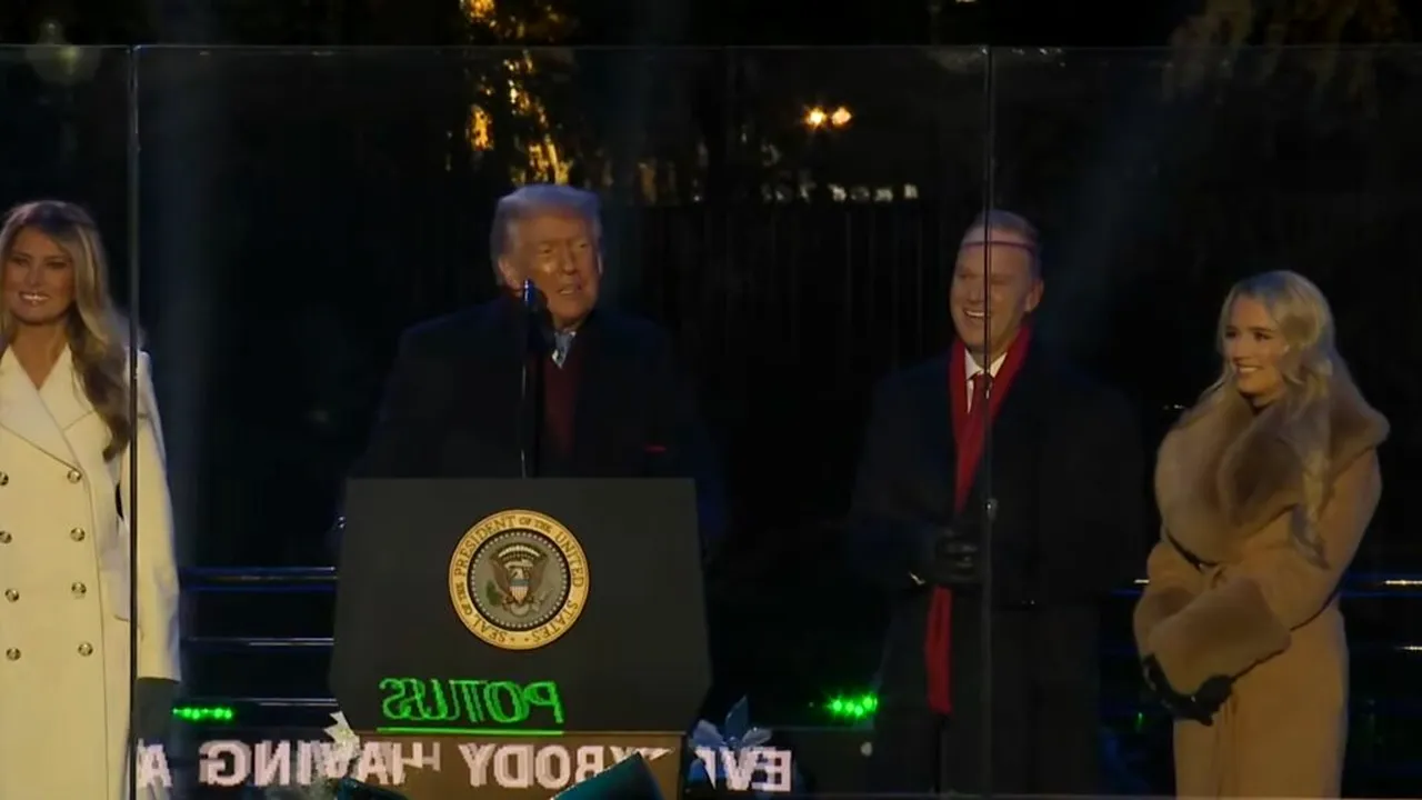 „Odată cu Nașterea lui Iisus, istoria omenirii s-a transformat din noapte în zi. Cuvântul și exemplul Său ne cheamă să ne iubim unii pe alții, să ne slujim unii pe alții și să onorăm adevărul sacru că fiecare copil este creat special după chipul lui Dumnezeu”, a spus Trump, îmbrăcat cu o haină închisă la culoare și mănuși.