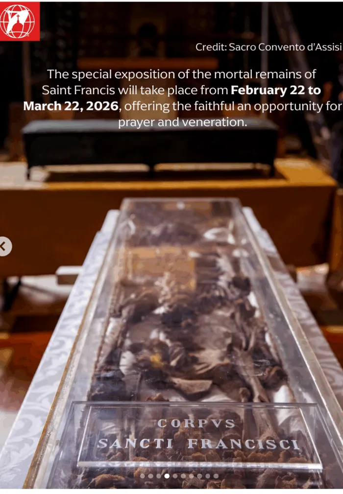 Sunt așteptați sute de mii de vizitatori, potrivit The Guardian. Oasele sfântului care a trăit în secolul al 13-lea vor fi expuse până pe 22 martie 2026.