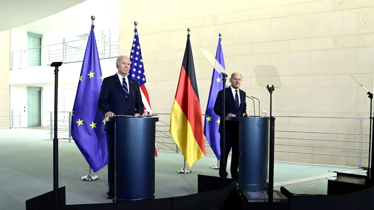 Joe Biden a cerut constant ajungerea la un acord între Israel și grupul islamist Hamas, deși Statele Unite oferă armament Israelului. Olaf Scholz a pledat pentru relansarea procesului de pace și avansarea soluției coexistenței a două state, israelian și palestinian.