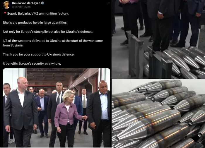 „Sopot, Bulgaria, fabrica de muniție VMZ. Aici se produc proiectile în cantități mari.Nu numai pentru stocurile Europei, ci și pentru apărarea Ucrainei. O treime din armele livrate Ucrainei la începutul războiului proveneau din Bulgaria.Vă mulțumim pentru sprijinul acordat apărării Ucrainei. Acesta contribuie la securitatea Europei în ansamblu”, este mesajul şefei UE postat pe X.