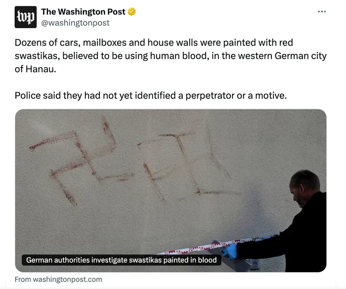 „Ceea ce s-a întâmplat aici încalcă orice linie de decență și umanitate”, a declarat primarul Claus Kaminsky (65 de ani, SPD). „Svasticile nu au ce căuta în Hanau. Nu vom permite ca astfel de simboluri să semene frică sau dezbinare. Prin urmare, depun o plângere penală.”