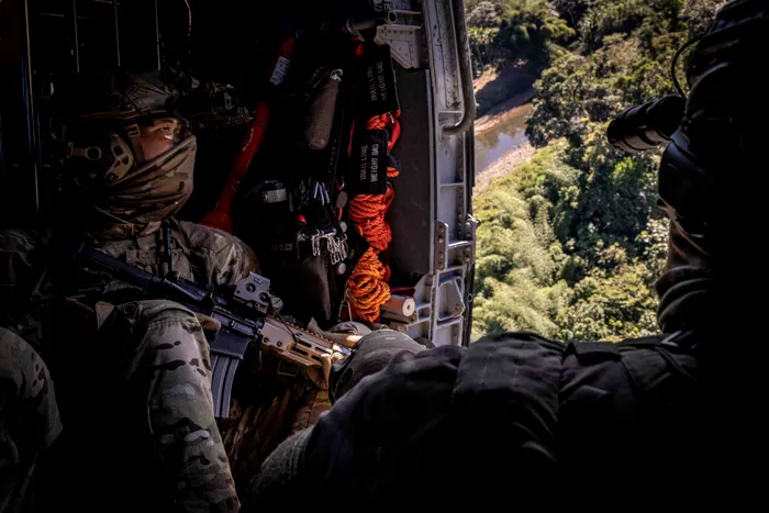 Și Comandamentul Operațiunilor Speciale al SUA a publicat imagini rare cu luptători din forțele speciale americane în raiduri în Caraibe. Imaginile arată desfășurări de forțe făcute ieri din elicoptere HH-60 ale Gărzii de Coastă a SUA deasupra Caraibelor, în cadrul operațiunii #SouthernSpear.