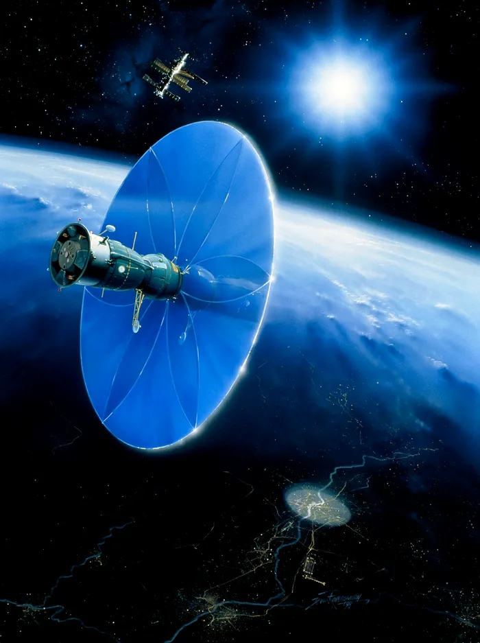 Opera de artă a oglinzii spațiale rusești Znamya pe orbită – Sursa foto: Profimedia