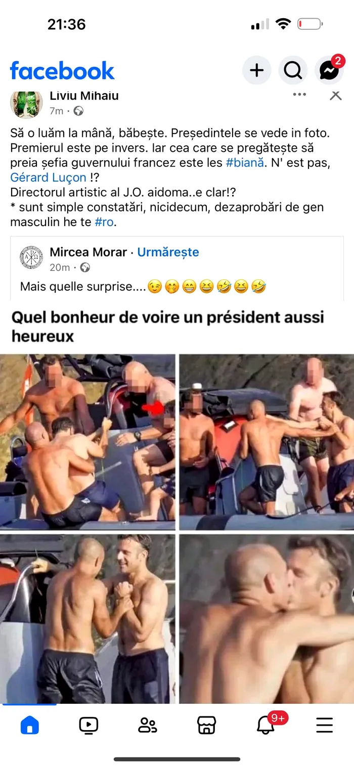 Însă, deși imaginile din presă sunt unele nevinovate, pe rețelele sociale au început să apară unele în care președintele francez pare să se sărute cu un bărbat.