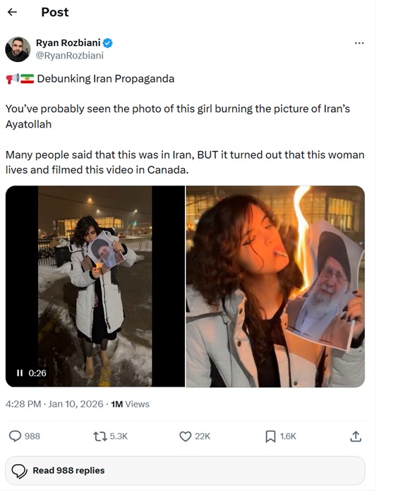 Protestele s-au răspândit în tot Iranul începând cu 28 decembrie, mai întâi ca răspuns la inflația în creștere și devenind rapid politice, protestatarii cerând sfârșitul guvernării clericale. Autoritățile din Iran acuză Statele Unite și Israelul de incitare la tulburări.