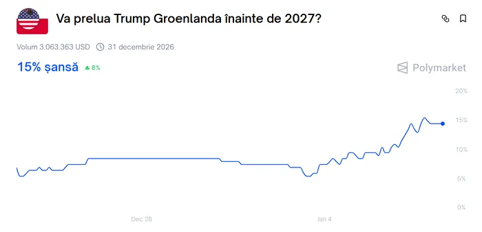 Kalshi, o piață de predicții deschisă utilizatorilor din SUA, evită listarea pariurilor privind războaiele. Cu toate acestea, oferă unele diverse opțiuni care ar putea fi văzute ca indicii ale unui conflict militar, inclusiv unul care pune întrebarea dacă toată Groenlanda sau o parte din ea s-ar alătura SUA.