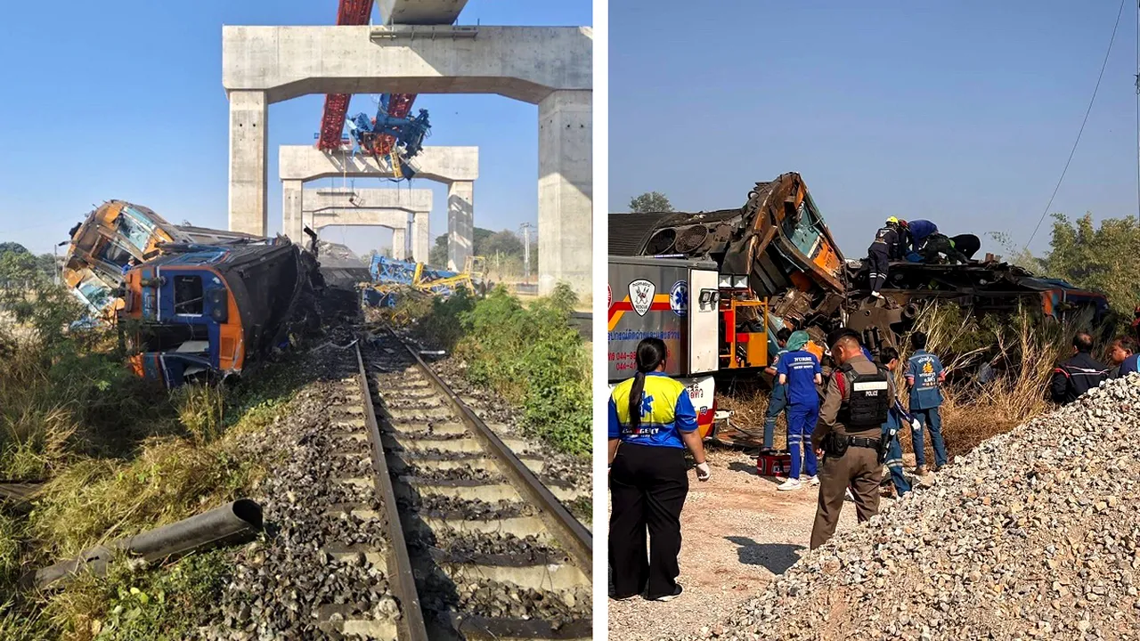 Cel puțin 19 persoane au murit și peste 80 au fost rănite după ce o macara de construcții s-a prăbușit peste un tren de pasageri din nord-estul Thailandei, provocând deraierea acestuia. Autoritățile avertizează că bilanțul ar putea crește.