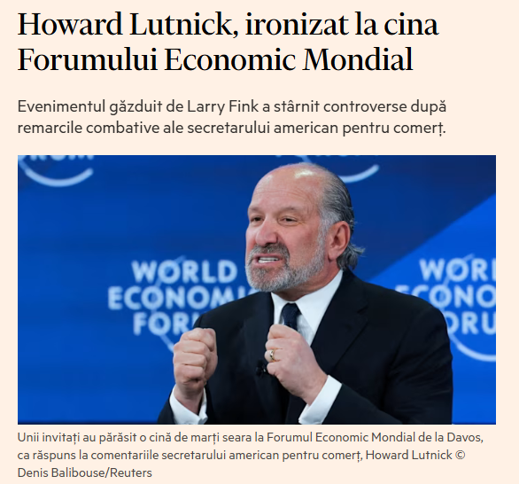 Marți, Lutnick scrisese un editorial pentru FT în care spunea: „Nu mergem la Davos pentru a menține status quo-ul. Îl vom confrunta direct.”