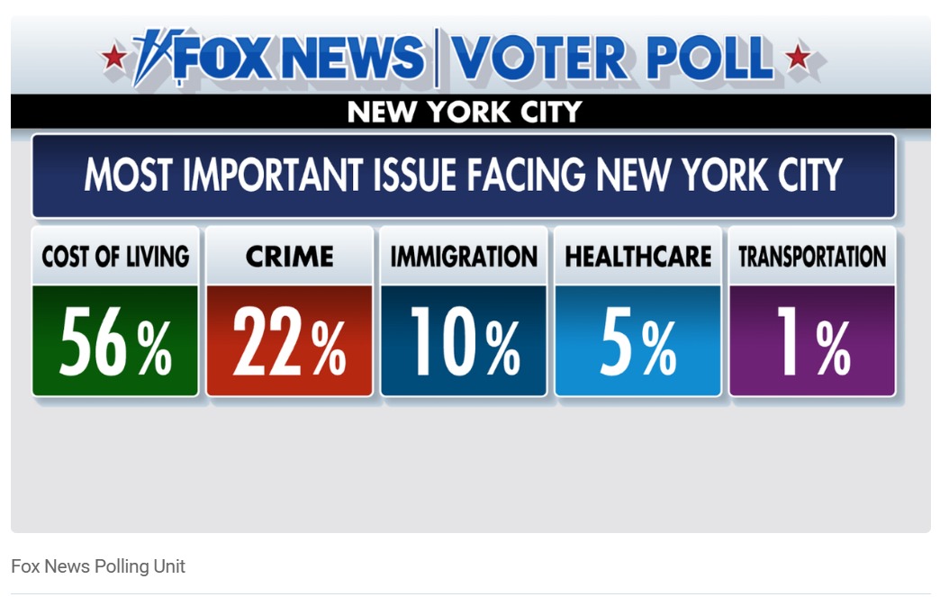 Potrivit unui sondaj Fox News, 56% dintre votanții newyorkezi intervievați sunt mai preocupați de scumpiri decât de sistemul medical. În ultimii ani, costurile traiului zilnic au crescut enorm.