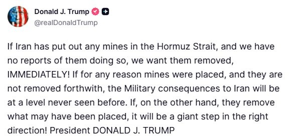 Potrivit CNN, Iranul a început să amplaseze mine maritime în Strâmtoarea Ormuz. Șeful Pentagonului, Pete Hegseth, a anunțat că la comanda președintelui Trump, Comandamentul Central al SUA a eliminat „cu precizie” vase iraniene care amplasau mine maritime în Strâmtoarea Ormuz.