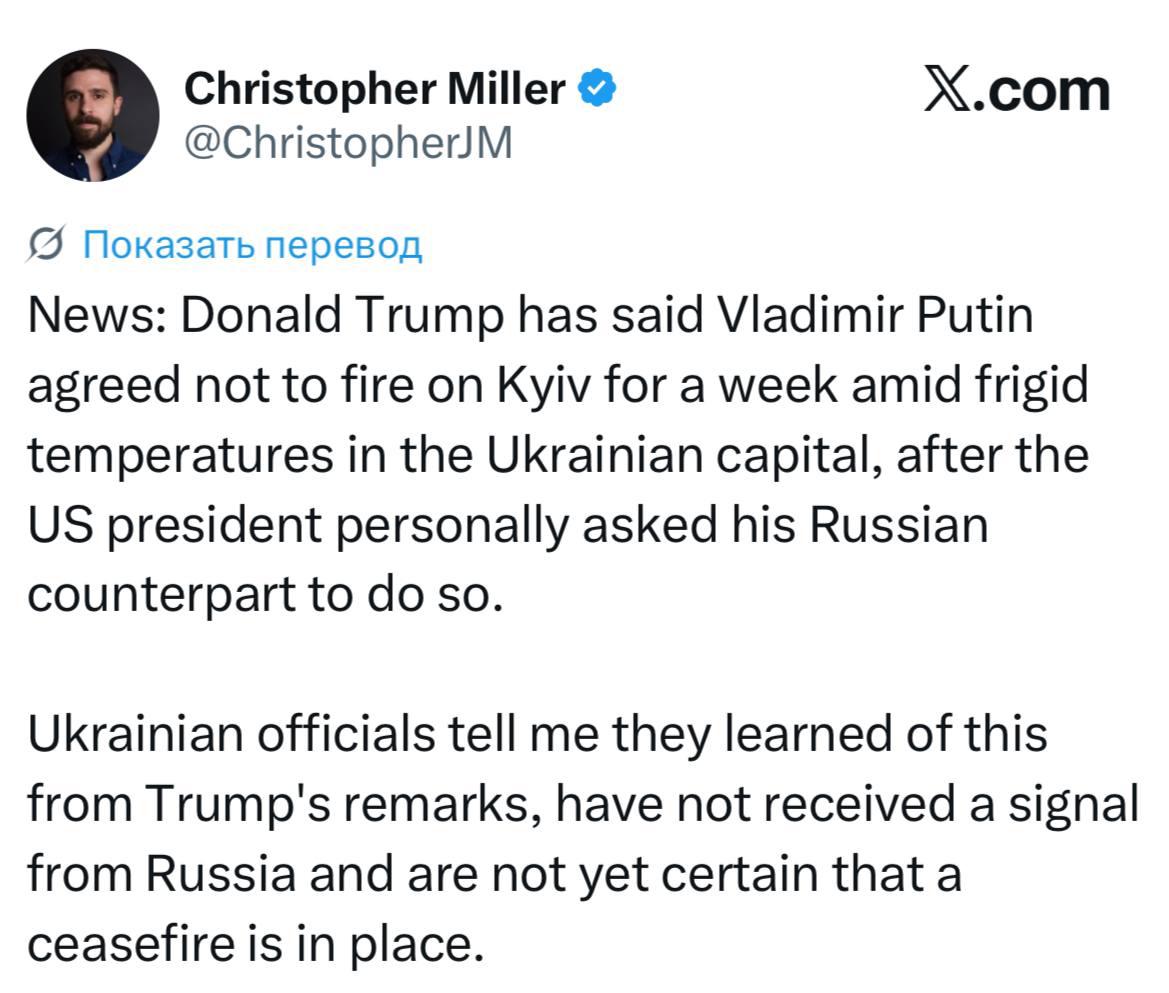 Christopher Miller, corespondent de la Financial Times pe războiul din Ucraina, a dezvăluit pe X că oficialii ucraineni nu au primit niciun semnal din partea Rusiei că ar putea opri atacurile și nici nu sunt siguri că armistițiul ar putea avea loc.
