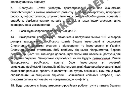 Planul american solicită Ucrainei să recunoască Crimeea, Luhansk și Donețk ca fiind efectiv sub controlul Rusiei, să organizeze alegeri în termen de 100 de zile, să reducă forțele armate, să renunțe la ambițiile de aderare la NATO și să elimine treptat sancțiunile impuse Moscovei. Oficialii americani au avertizat Kievul că lipsa implicării în acest plan ar putea afecta sprijinul militar pe viitor.