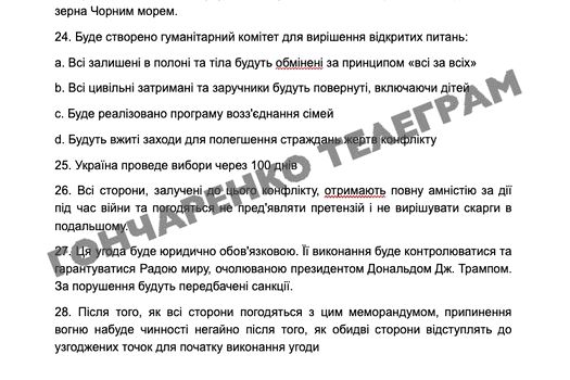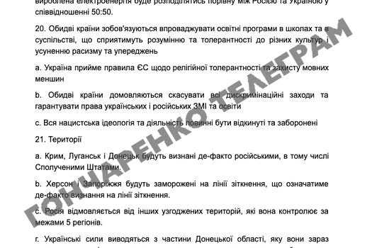 Deputatul ucrainean Oleksiy Goncharenko a publicat joi noapte pe social-media documentul integral al planului negociat de Donald Trump cu Rusia pentru un armistițiu pe frontul din Ucraina. Conținutul documentului a fost confirmat de publicațiile Axios și Wall Street Journal.