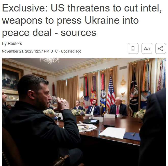 Putin a numit planul de pace al lui Trump „noua versiune, care este, în esență, un plan modernizat în 28 de puncte”. Volodimir Zelenski l-a numit documentul care vine „în unul dintre cele mai grele momente din istoria noastră” și a cărei adoptare ar știrbi „demnitatea” Ucrainei.