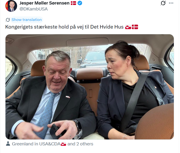 Ministrul danez de externe, împreună cu ministrul afacerilor externe al Groenlandei, se var întâlni cu vicepreședintele SUA, JD Vance, și cu secretarul de stat Marco Rubio, în clădirea Eisenhower, învecinată Casei Albe. Reuniunea are loc pe fondul presiunilor intense exercitate de președintele Donald Trump pentru a obține controlul asupra insulei arctice, acesta afirmând recent că SUA vor acționa în Groenlanda „fie că le place sau nu” danezilor și groenlandezilor.