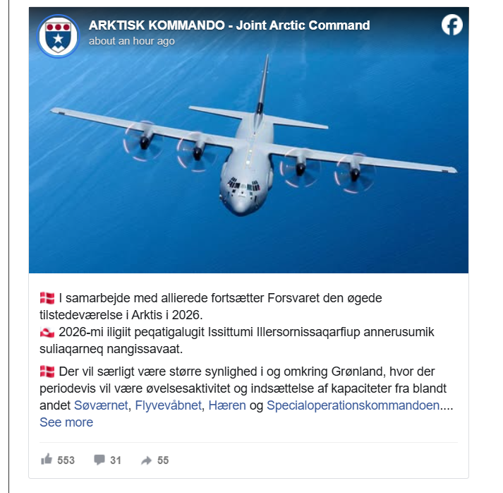 „Forțele de Apărare Daneze, împreună cu o serie de aliați arctici și europeni, vor explora în următoarele săptămâni modul în care se poate implementa o prezență sporită și o activitate de exerciții în Arctica”, a declarat ministrul Apărării, Troels Lund Poulsen.