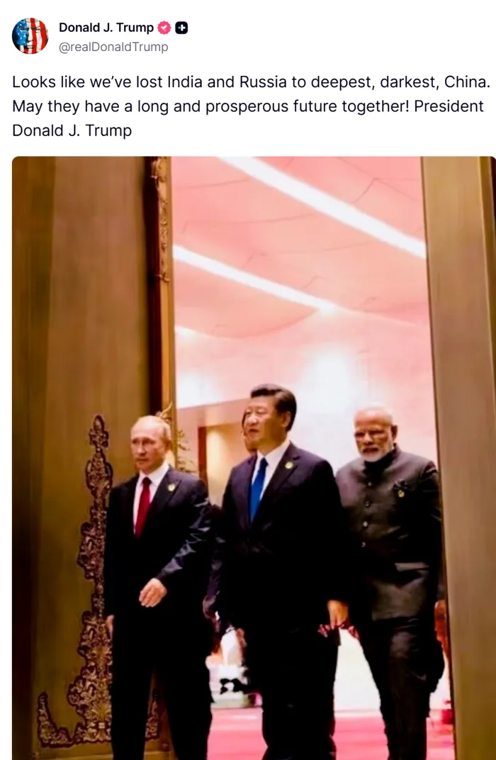 Președintele american Donald Trump și-a exprimat dezamăgirea pe platforma de socializare Truth Social după ce a urmărit Parada de Ziua Victoriei de la Beijing. Liderul de la Casa Albă spune că „Rusia și India au fost pierdute în fața Chinei”, după ce președintele rus Vladimir Putin și premierul indian Narendra Modi s-au întâlnit cu președintele chinez Xi Jinping la summitul OSC de la Tianjin.