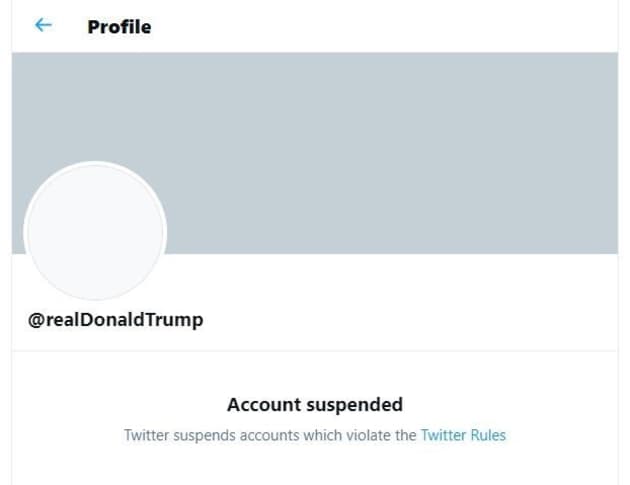 After close review of recent Tweets from the @realDonaldTrump account and the context around them we have permanently suspended the account due to the risk of further incitement of violence.https://t.co/CBpE1I6j8Y