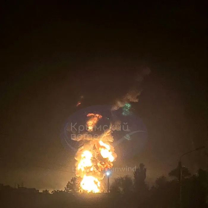 Mai devreme în cursul aceleiași nopți, dronele ucrainene au atacat terminalul petrolier din Feodosia, în Crimeea, declanșând un incendiu masiv care era vizibil de la zeci de kilometri, potrivit Statului Major al Ucrainei.