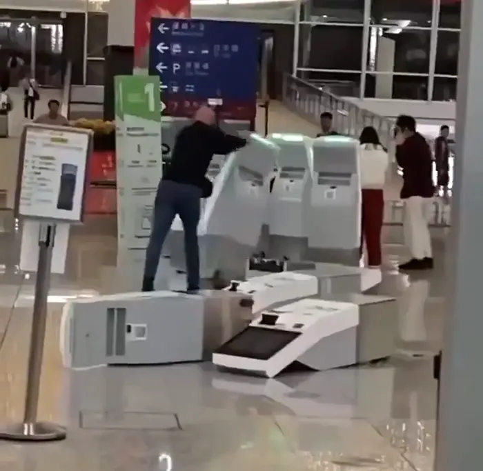 Imaginile cu acesta în timp ce vandaliza aeroportul au ajuns repede pe rețelele de socializare. Autoritatea aeroportuară a declarat că acesta a distrus aproximativ 10 chioșcuri, mai multe balustrade și ghișee din apropiere.