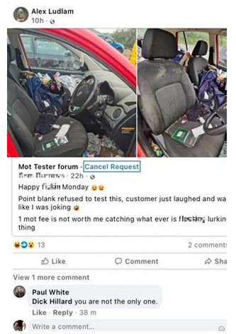 „Am refuzat de la început să testez mașina, iar clientul a râs și a plecat, crezând că glumesc. Pentru prețul unei inspecții nu merită să iau vreo boală din chestia asta”, a scris mecanicul, citat de ladbible.com.