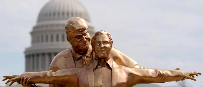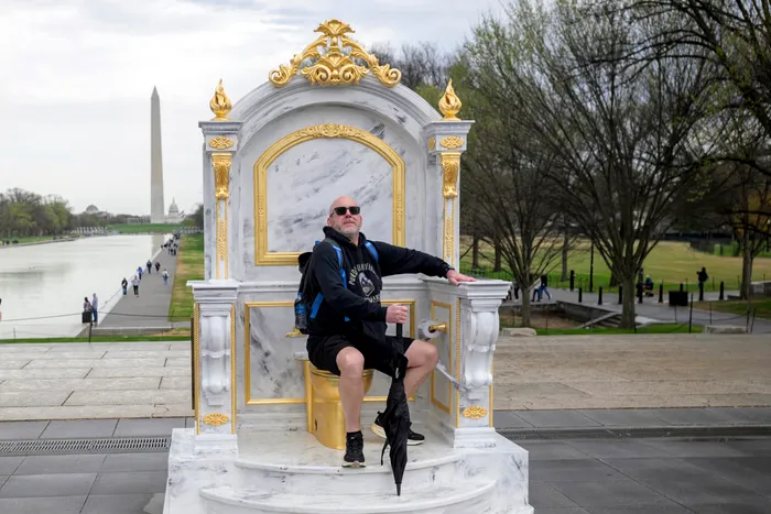 La doar două zile după protestele naționale „No Kings”, sculptura intitulată „Un tron potrivit pentru un rege” a apărut lângă Memorialul Lincoln, grație grupului de artiști The Secret Handshake, care a devenit celebru pentru statuia cu Donald Trump care se ține de mână cu infractorul Jeffrey Epstein.