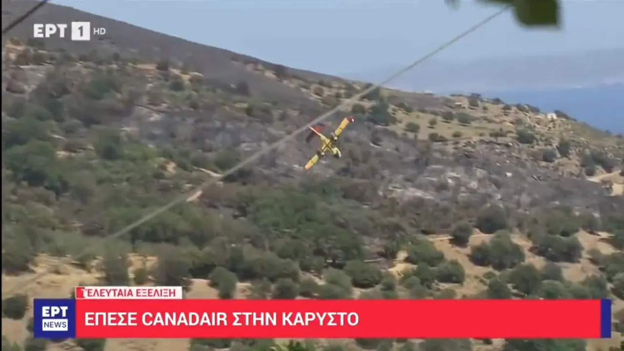 Un avion de stingere a incendiilor aparținând Canadair s-a prăbușit în timp ce acționa asupra unui incendiu pe insula grecească Evia. Incidentul a fost raportat de canalul TV ERT-1.