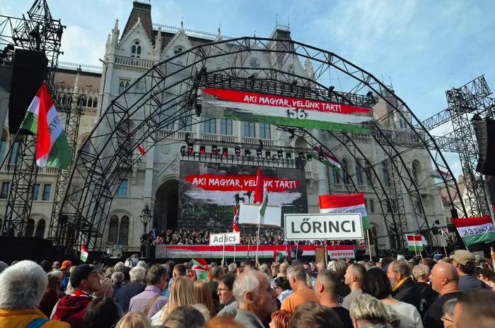 Mulțimea adunată în Piața Lajos Kossuth i-a scandat numele premierului.