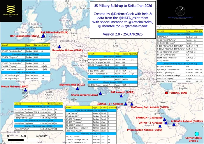 Sunt trupe americane staționate în Iordania, Kuweit, Bahrain, Arabia Saudită și Qatar, cu sistemele Thaads care pot intercepta rachete balistice aflate deasupra atmosferei Pământului, plus sistemele Patriot ce pot intercepta rachetele de rază scurtă, lansate la altitudine mică.