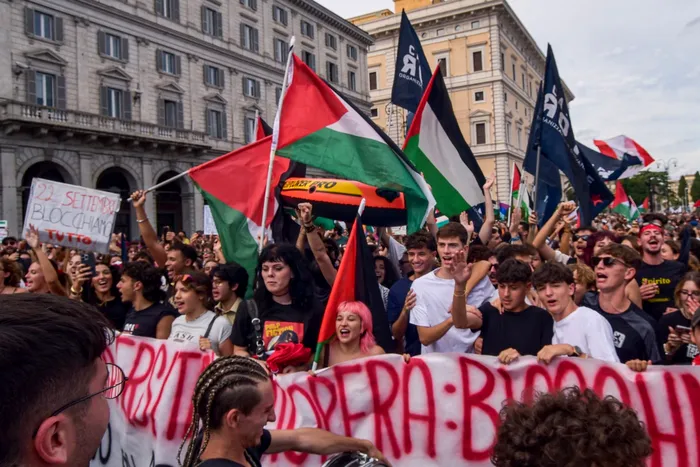 Această mobilizare a avut loc în ziua în care Franța și alte câteva țări au recunoscut în mod oficial statul Palestina la ONU, după ce Marea  Britanie, Australia și Canada au făcut acest lucru duminică. Italia încă nu a luat o decizie în acest sens. La Roma, potrivit prefecturii, peste 20.000 de persoane, între care numeroși liceeni, s-au adunat în fața gării Termini, fluturând steaguri palestiniene și strigând „Palestina liberă!”.