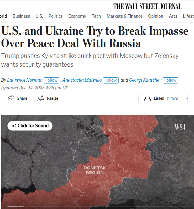 Un punct al documentului prevede textul: „Crimeea, Luhansk și Donețk sunt de facto recunoscute ca fiind rusești; Herson și Zaporijie de-a lungul liniei de contact sunt înghețate. Rusia renunță la alte teritorii convenite. Ucraina se retrage din partea Donețkului pe care o controlează, care este demilitarizată și recunoscută pe plan internațional ca fiind rusească.”