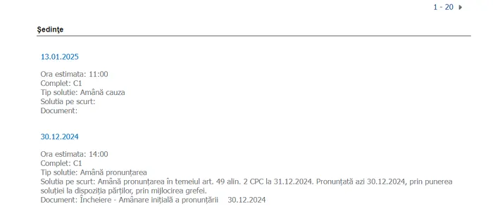 Conform portalului instanţelor de judecată, ora estimată pentru începerea şedinţei de judecată este 14.00. Pe 24 decembrie, Curtea de Apel București a schimbat termenul de judecată din data 13.01.2025 ora 11.00 la data de 30.12.2024, ora 14.00.