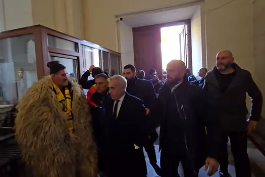 În așteptarea ieșirii candidatului la presedinție, sute de suporteri politici scandau lozinci partizane și împotriva sistemului juridic care l-au scos temporar pe favoritul lor din cursa pentru Cotroceni.