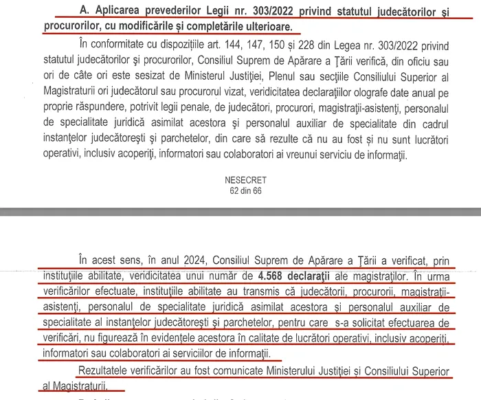 Rezultatele verificărilor au arătat că niciunul dintre aceştia nu figurează în evidenţele serviciilor de informaţii ca lucrători operativi, colaboratori sau informatori acoperiţi. Concluziile au fost transmise atât Ministerului Justiţiei, cât şi Consiliului Superior al Magistraturii.