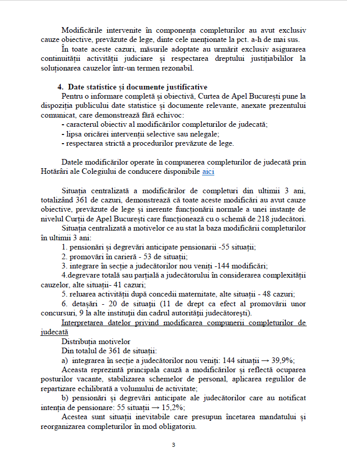 Curtea afirmă că pune la dispoziția publicului date și documente anexate comunicatului, despre care spune că „demonstrează fără echivoc” „caracterul obiectiv al modificărilor”, „lipsa oricărei intervenții selective sau nelegale” și „respectarea strictă a procedurilor prevăzute de lege”.