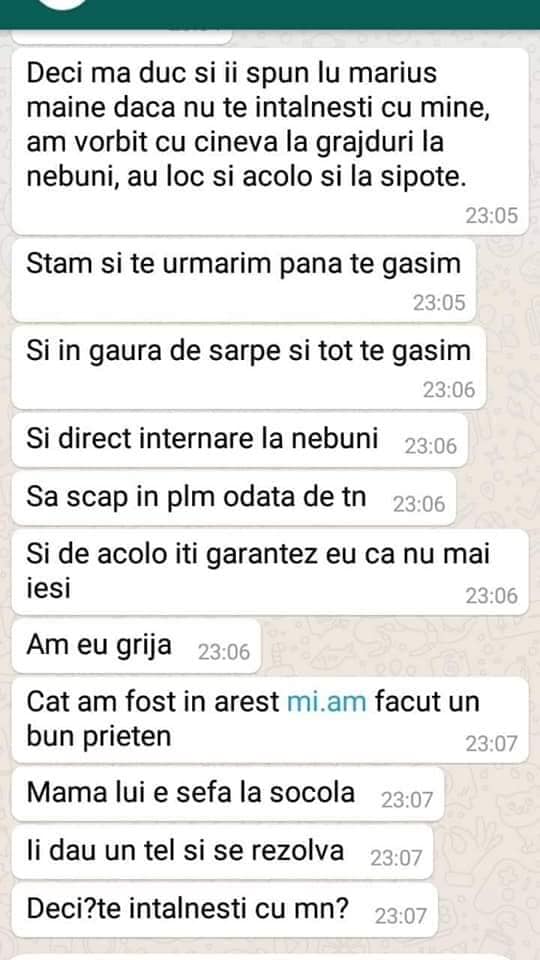 „Rămăsese să o ajut pe mama lui cu curățenie, spălat, lucruri casnice. Ne-am îndrăgostit. Am rămas până în 2018 împreună, până când am fost răpită de pe stradă, din stația de tramvai. Lui Marius i-au trimis mesaje, atât lui cât și mamei lui, că nu mi-am dorit o relație cu el, că nu l-am iubit pe cel mic. Ideea era să pice ei în picioare, și eu când se poate de în gunoi. Cât timp am fost sechestrată de mine nu prea avea cine să se intereseze”, spune fata.