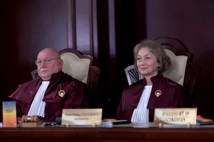 Membrii Curtii Constitutionale, Cristian Deliorga si Simina Elena Tanasescu discuta sesizarile depuse de Inalta Curte de Casatie si Justitie, dar si de partidele AUR, S.O.S. si POT impotriva legilor din Pachetul 2 pentru care Guvernul Bolojan si-a angajat raspunderea in Parlament, miercuri, 24 septembrie 2025. ALEXANDRA PANDREA / GMN / MEDIAFAX FOTO