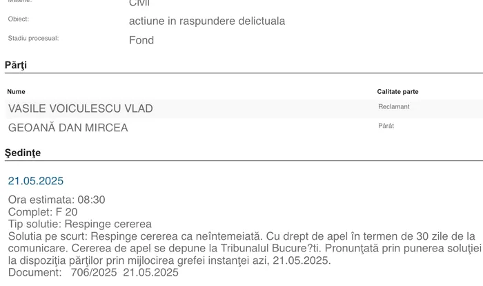 Tribunalul București a respins cererea lui Vlad Voiculescu pe 21 mai ca „neîntemeiată”. Decizia nu este definitivă, iar Vlad Voiculescu a declarat, în exclusivitate pentru Gândul, că va face apel în termen de 30 de zile.