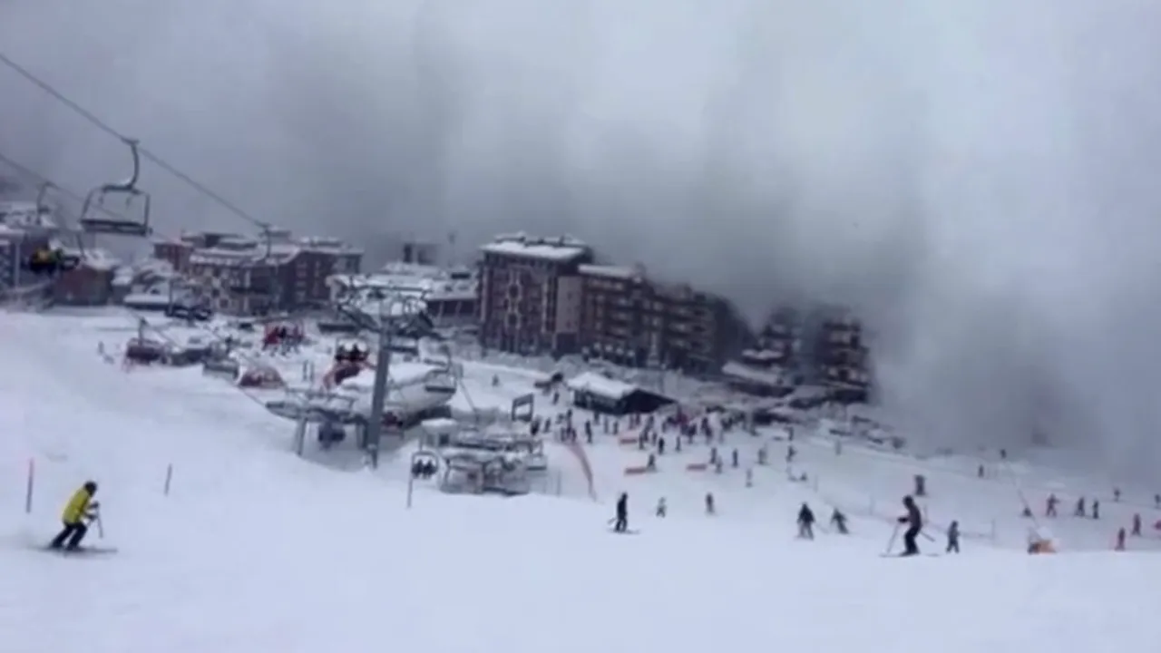 Zăpada acumulată în Masivul Jumeaux a căzut brusc în stațiune, exact la capătul pistei de schi, plină de turiști.