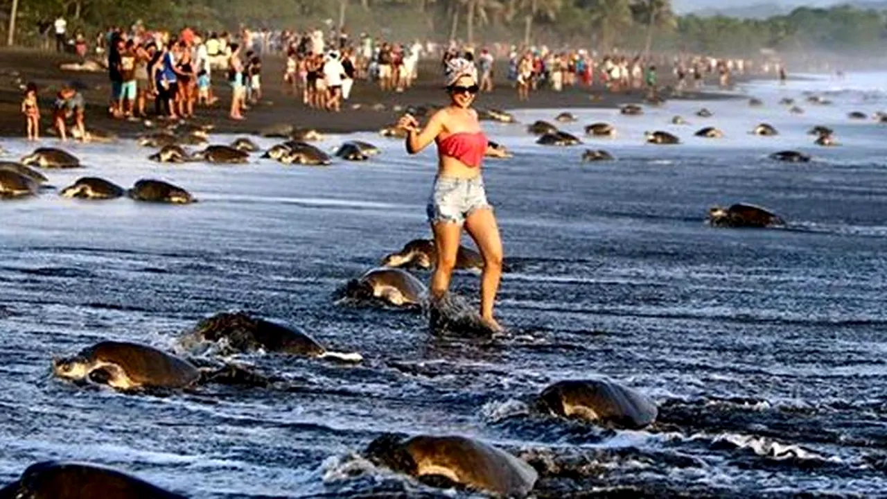 Sute de oameni au mers pe plajă, care face parte din Ostional Wildlife Refuge, pentru a vedea fenomenul, numit de localnici „arribada”, transmite Huffington Post. Problema este că nu s-au mulțumit să privească de la distanță, ci au mers chiar pe plajă, printre țestoase. Foarte multe animale s-au întors în mare și nu au mai depus ouă.