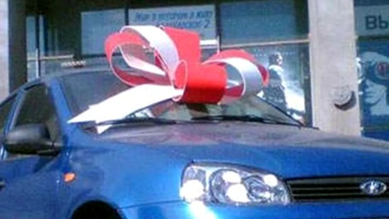 În prima fotografie, apare o mașină parcată în fața unui magazin din Rusia, lăsată „pe butuci”. Nu este clar dacă posesorului mașinii i-a fost lăsat un mesaj „de mulțumire” sau dacă mașina fusese câștigată la un concurs. Cert este că proprietarul autovehicolului a avut o surpriză de proporții când și-a văzut mașina în halul ăsta: