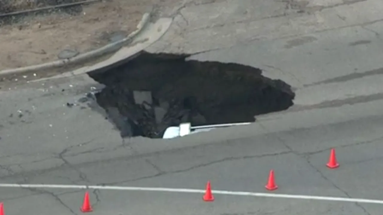 Sergentul Greg Miller patrula la ora 2 dimineața, când, într-o intersecție, pământul a cedat, iar mașina a căzut aproape 5 metri în gol.