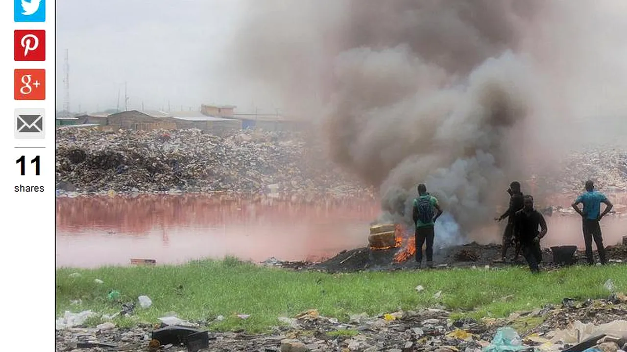 „Statele dezvoltate exportă milioane de tone de deșeuri anual spre țările sărace, precum Ghana”, a anunțat QAMP pe site-ul său. În fotografii pot fi observați tinerii care caută prin gunoaiele occidentalilor, demontează radiouri vechi și ard piesele pentru a recupera metalul. Aceste activități le asigură un venit, dar îi expun la riscuri mari.