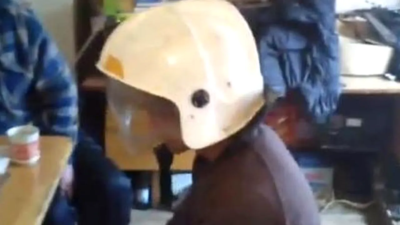 Rușii, care par a fi în stare de ebrietate, au ales un cobai mai tânăr. Colegul își pune casca, dar când aude că unul dintre ei cere barosul, o aruncă.