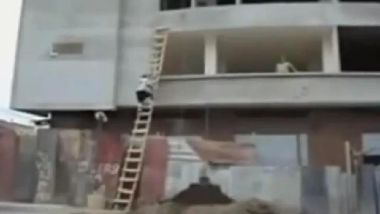 Astfel, după ce umplea găleata cu nisip, acesta urca pe o scară la etajul superios al imobilului, de unde cobora ținându-se de o sfoară de care era legat și recipientul respectiv.
