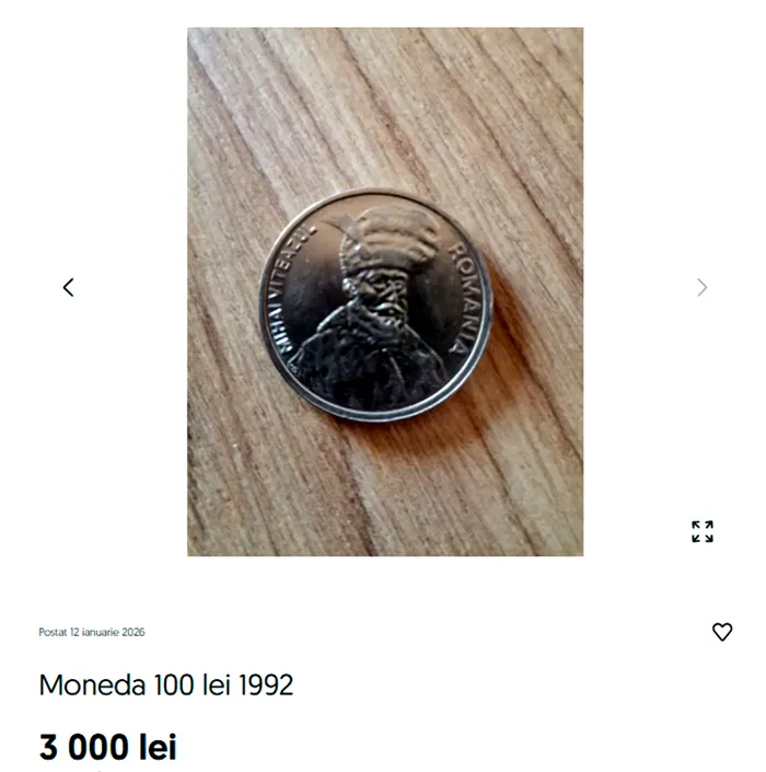 Iată suma uriașă cu care se vinde acum, în 2026, acest bănuț. Un vânzător cere nu mai puțin de 3.000 de lei pe o monedă de 100 de lei din 1992.