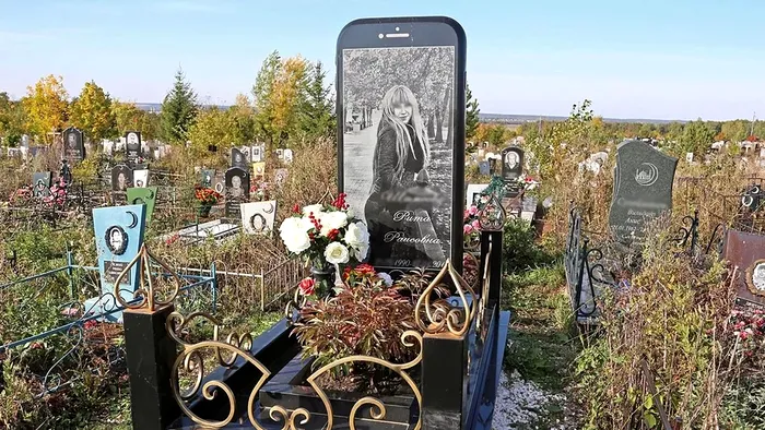 Tatăl îndurerat Rais Shameev a adăugat piatra funerară, realizată din bazalt, în formă de iPhone negru. Ciudatul monument se află în cimitirul din orașul rusesc Ufa.