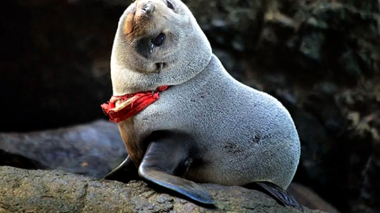 Un pui de focă gri care înota în largul Insulelor Antipodes din Noua Zeelandă s-a trezit „captiv” într-o pereche de chiloți tanga roșii aruncați în apă, scrie The Sun.