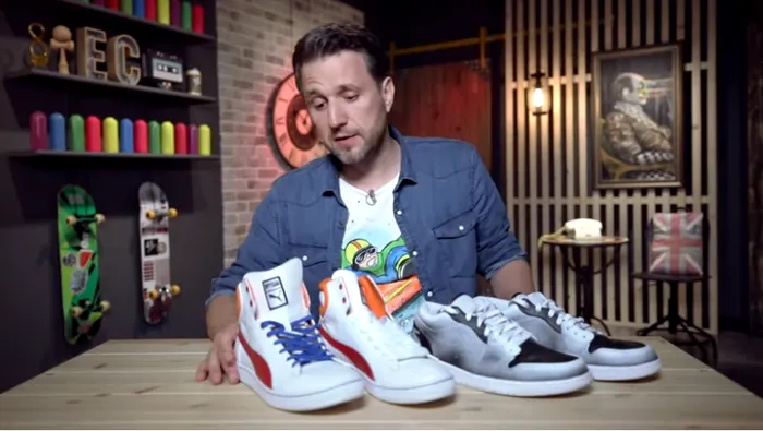 Andi Moisescu, prezentându-și perechea de adidași de la Puma