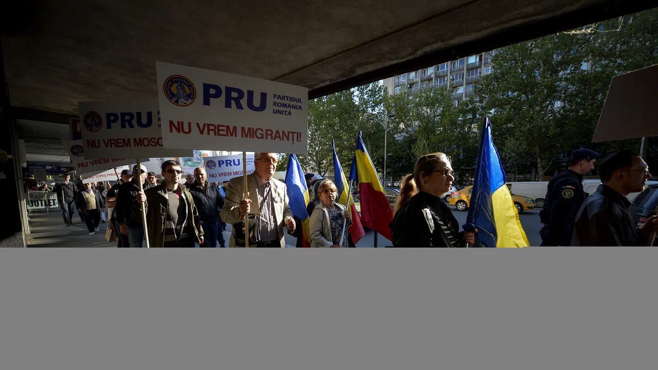 Peste 50 de persoane, membri și simpatizanți ai Partidului România Unită, au plecat în marș de protest pe străzile dintre Piața Universității și Piața Romană din Capitală, exprimându-și astfel nemulțumirea față de intenția construirii unei moschei în București.